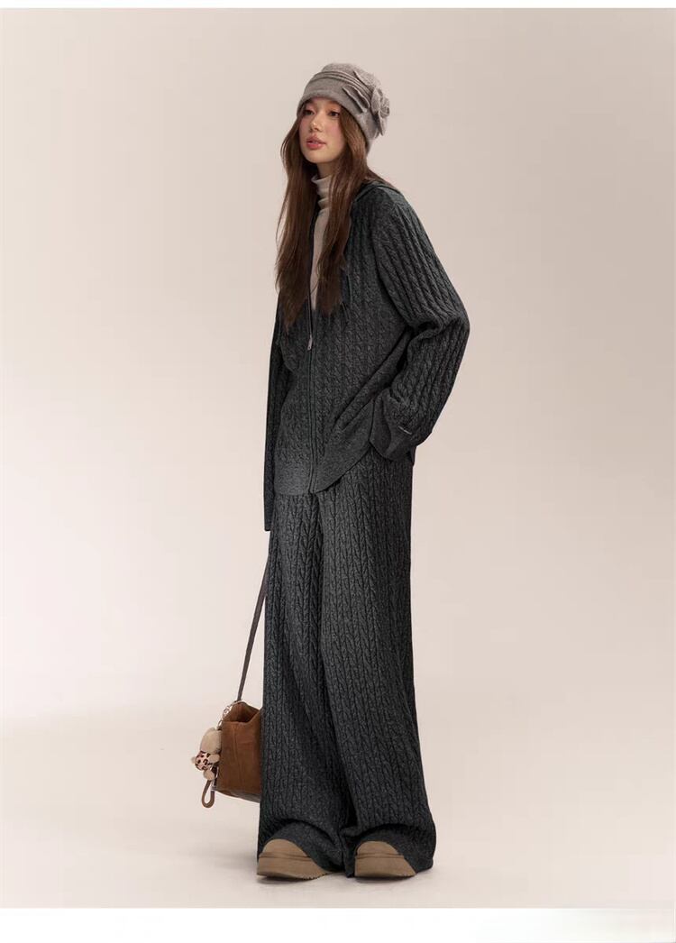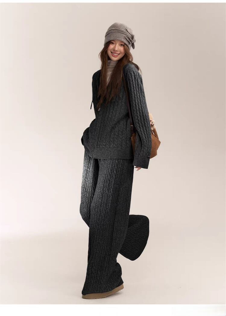リラックスしたスタイルが楽しめるオーバーサイズのニットカーディガンとロングパンツのセットが登場!ゆったりしたシルエットで、ちょっとしたお出かけやリラックスタイムにぴったりなアイテムです。