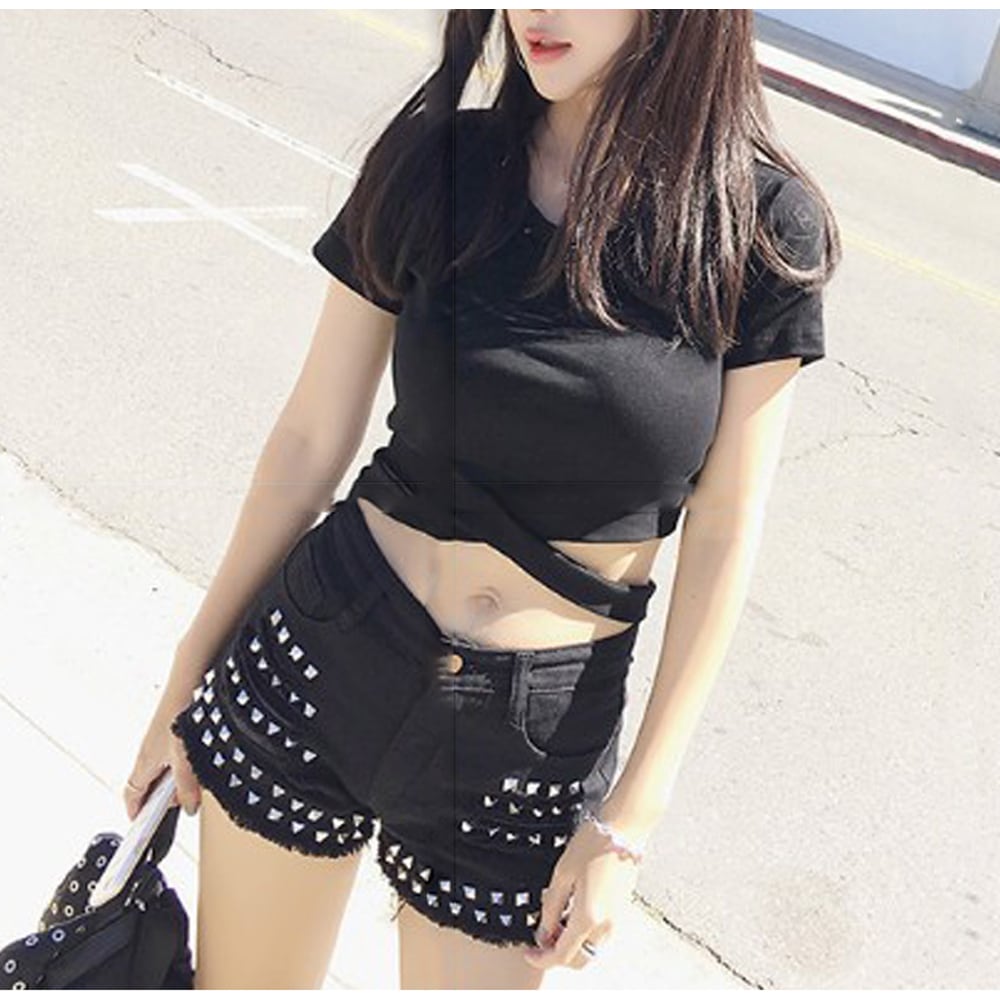 へそ出し トップス 半袖 tシャツ 無地 カットソー ショート丈