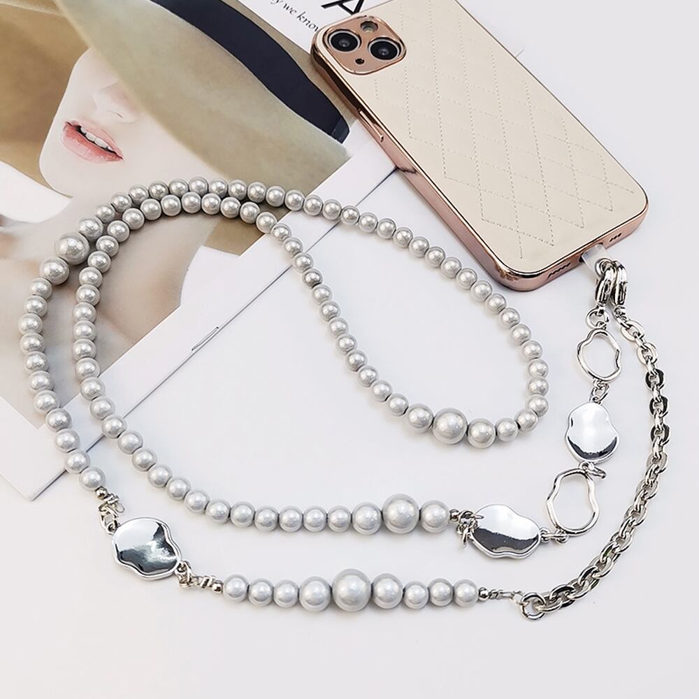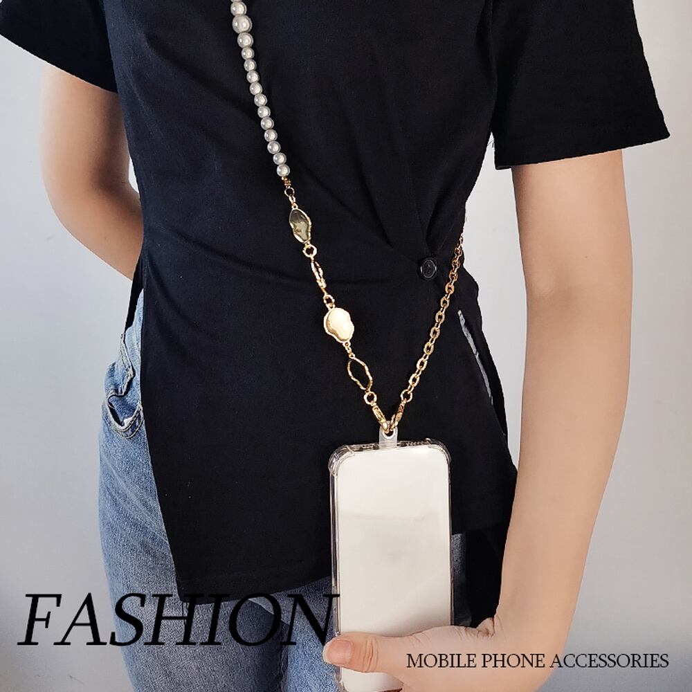おしゃれ 携帯ストラップ 全機種対応 落下防止 挟むだけストラップ フェイクパール 肩掛け 着脱簡単 長さ調節可能 旅行