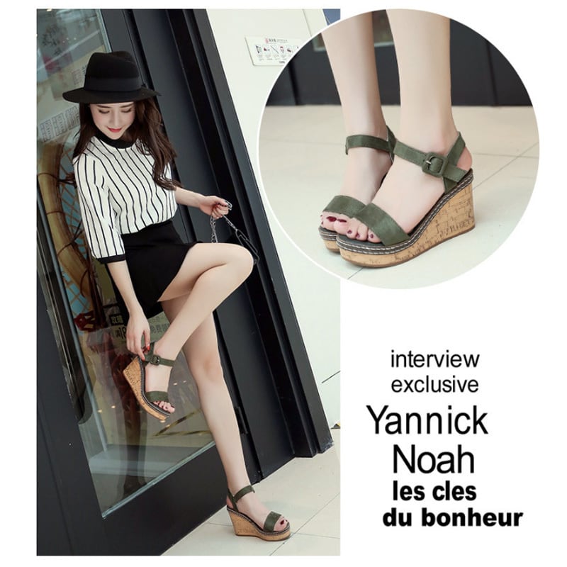 レディース サンダル オープントゥ 9cm クロス 美脚 脚長 歩きやすい ウェッジソール 厚底