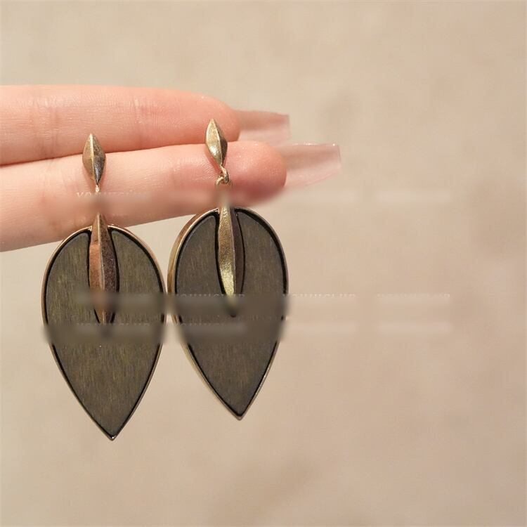 木と金属の葉モチーフ シンプルで大胆 イヤアクセサリー