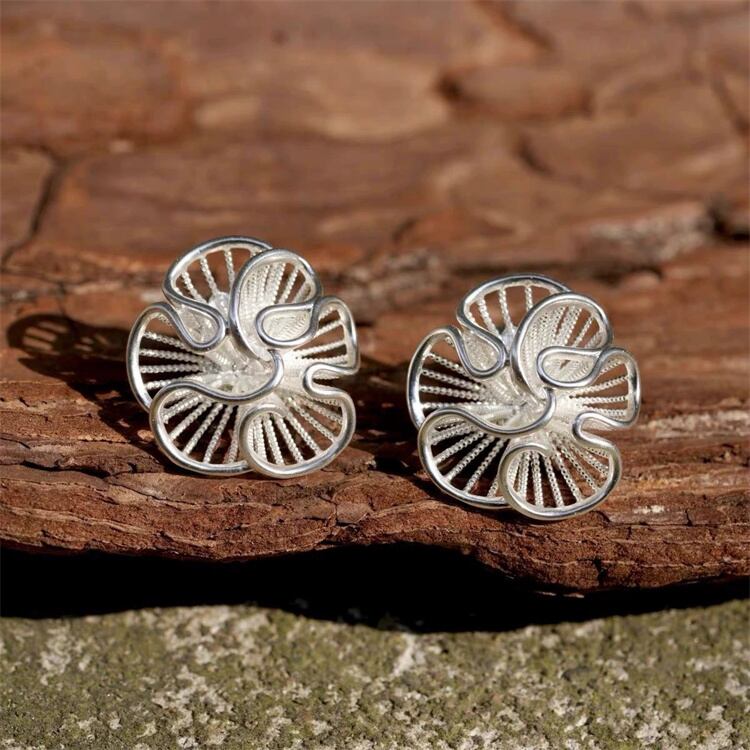 自然の花をモチーフにした立体的なデザインが魅力のイヤリングです。耳あきがある方はスタッドタイプで、ない場合は後ろ留めのクリップ式でご使用いただけます。軽量で肌触りの良い素材は敏感肌にも優しく、デイリーからデートまでシーンを選ばず活躍します。カラーバリエーション豊富で、コーディネートのポイントに最適です!
