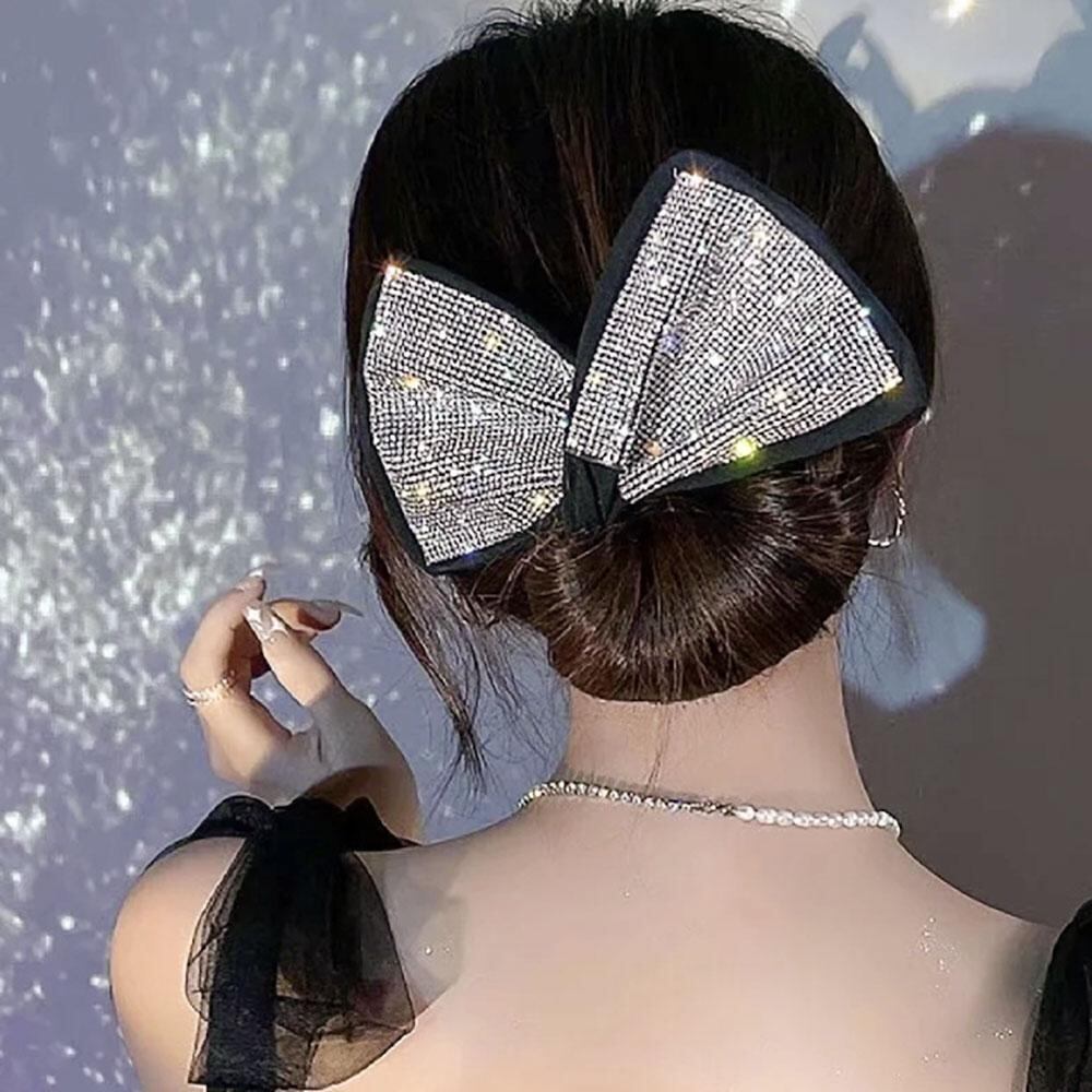 ヘアアクセサリー ラインストーン キラキラ 大 リボン ジルコニア アクセサリー 髪留め