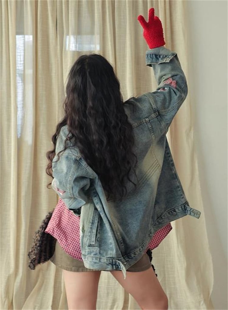 おしゃれでユニークなデザインの、蝶刺繍デニムジャケットです!こちらのジャケットは、春や秋のコーディネートにぴったりで、カジュアルなスタイルでも華やかさを演出します。フード付きのルーズなシルエットが、リラックス感を加えつつも、スタイリッシュな印象を与えます!