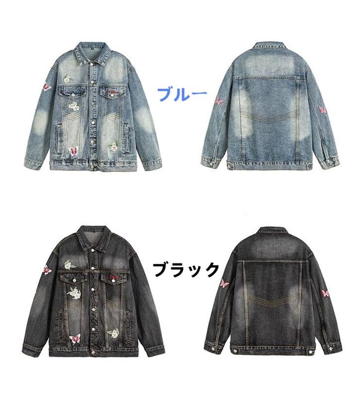 【魅力的な刺繍と着心地!】 上質なデニム素材を使用しており、耐久性と柔らかさを兼ね備えています。美しい蝶の刺繍が施されており、細部にこだわったデザインが特徴です。デイリーコーデに自然と溶け込み、アクセントとなるアイテムです!
