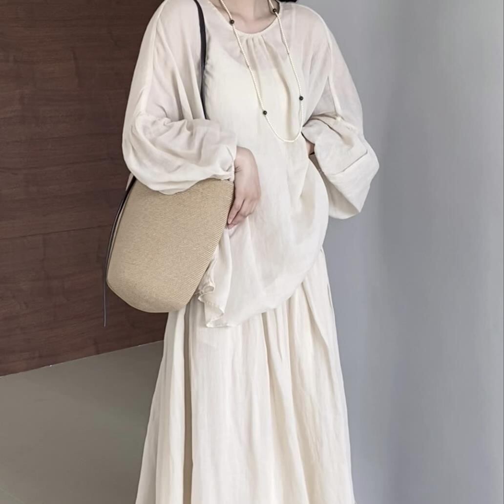 トップス レディース シャツ ロングスカート 2色 二点セット 韓国風 2025夏新作