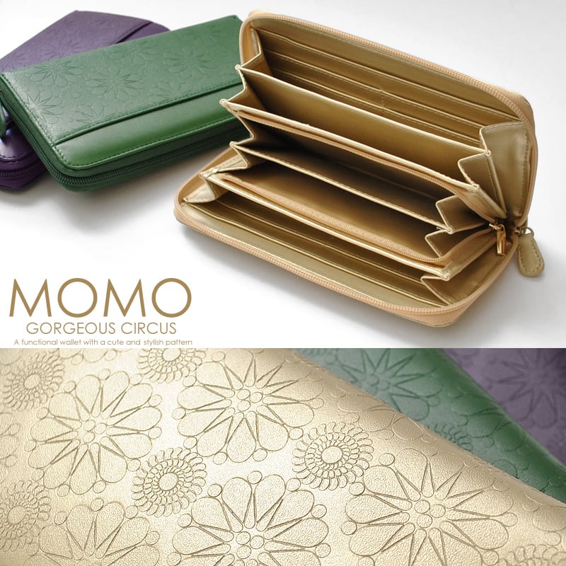 MOMOの牛革型押しラウンドファスナー長財布「GORGEOUS CIRCUS」