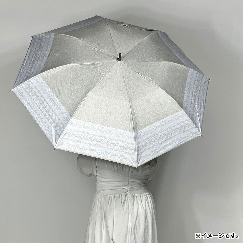 晴雨兼用ショートワイド傘 リネン風無地×リバーレースプリント ベージュ×オフホワイト
