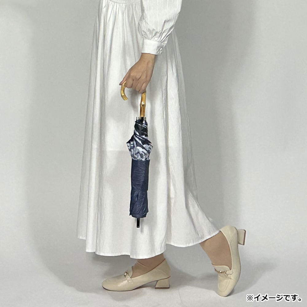 晴雨兼用ショートワイド傘 リネン風無地×リバーレースプリント ネイビー×オフホワイト