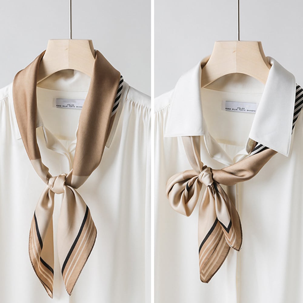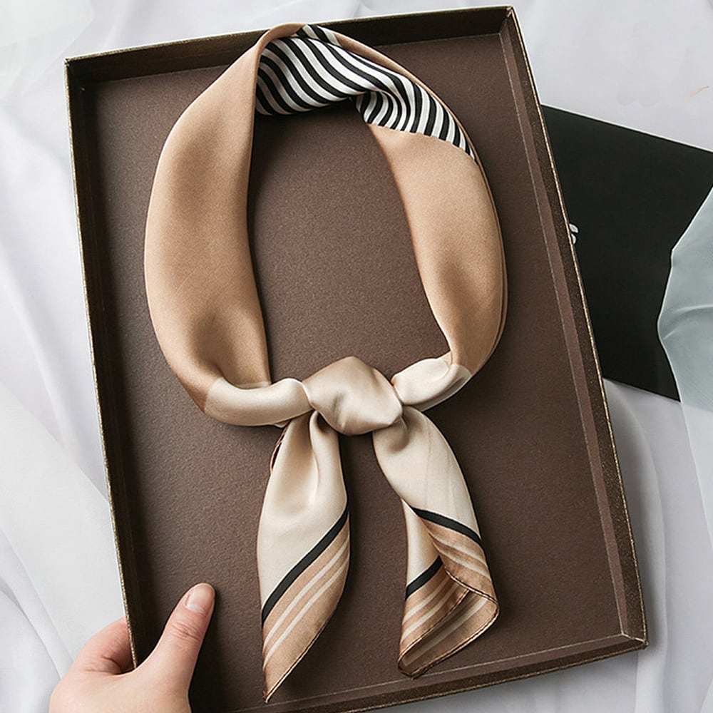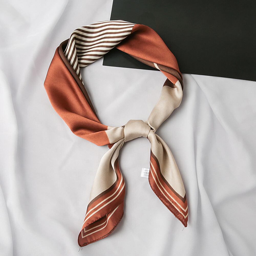 シルク風スカーフ 首巻き 配色バンダナ