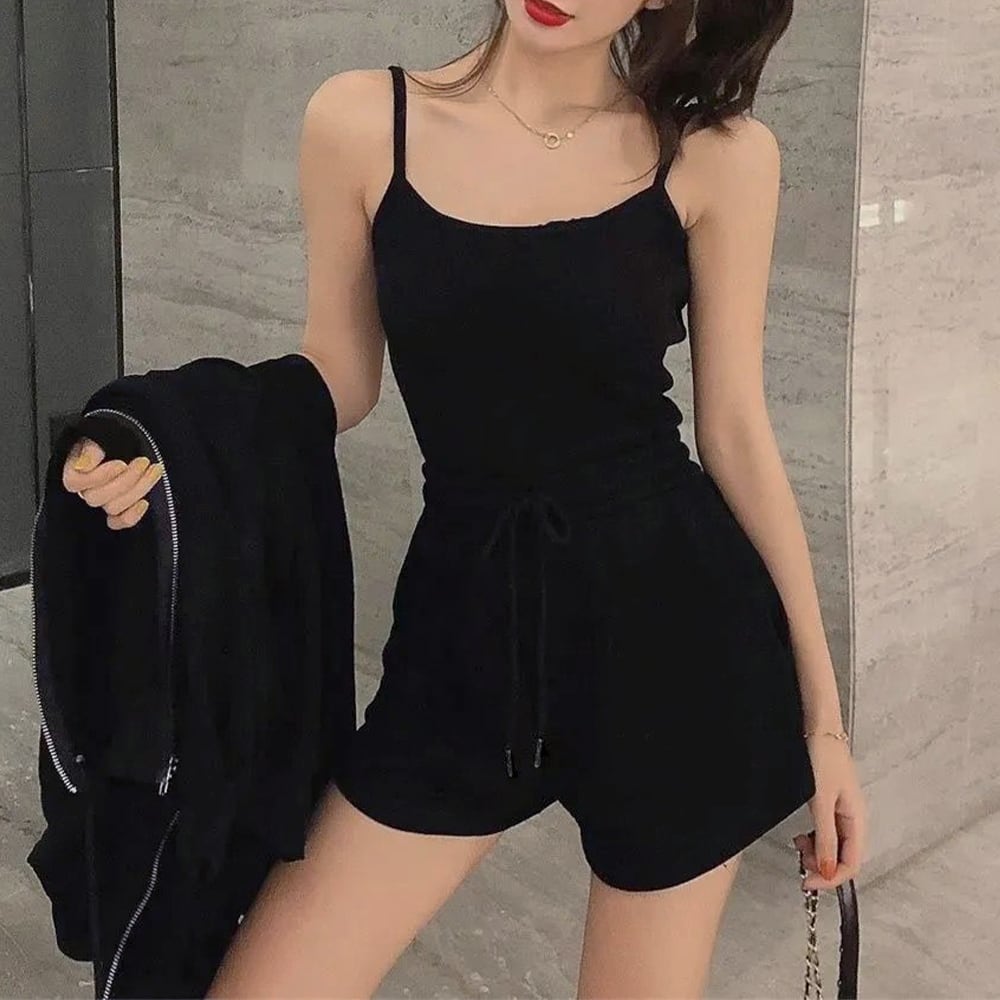 クロップド丈のキャミトップスは、スポーツウェアのようなデザインで、動きやすく快適な着心地