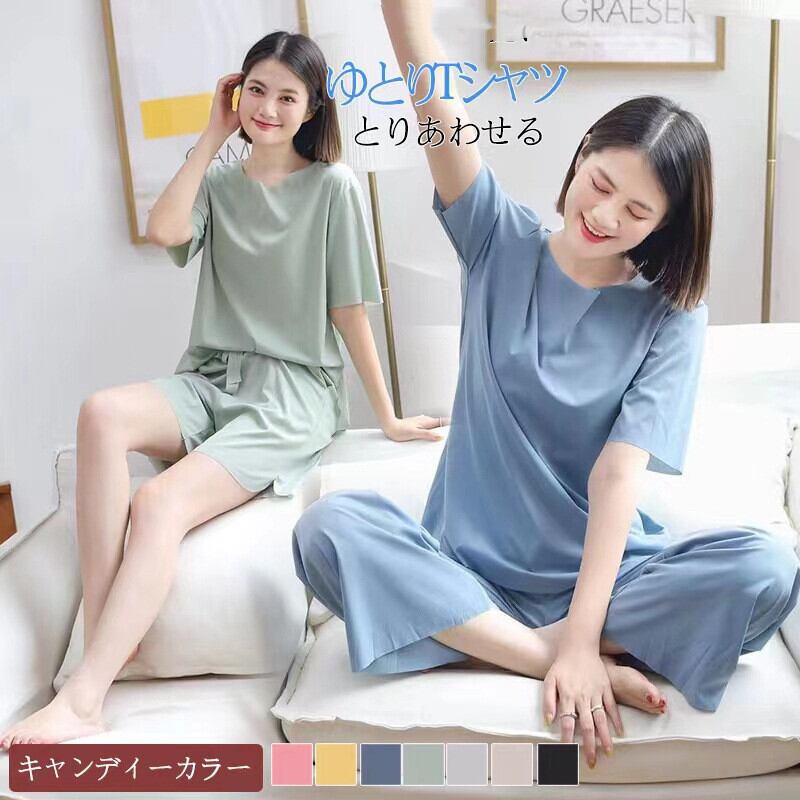 ルームウェア 楽ちん tシャツ セットアップ ウエストゴム 上下セット ワンマイルウェア 部屋着 涼感