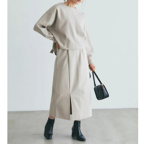 2. 厚手の素材で秋冬でも心地よく、季節感を楽しみながらスタイリッシュに決まるワンピースです。アウターとの組み合わせも楽しく、さまざまなおしゃれが楽しめます。