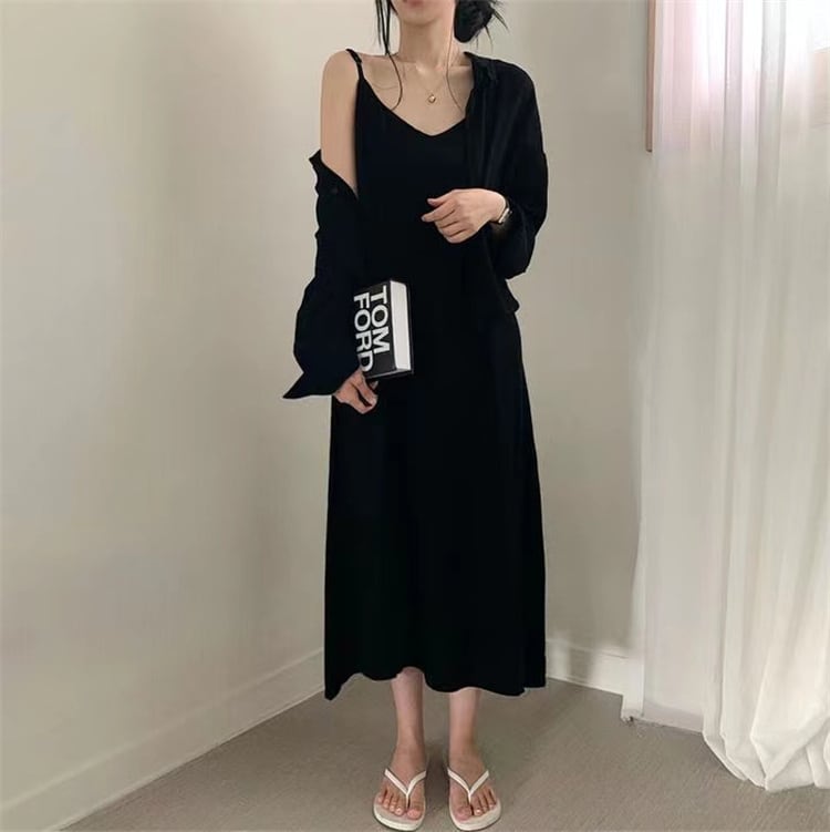 3. このコーデセットは、ストラップワンピースを単独で着るのはもちろん、シャツアウターを羽織って他のアイテムと組み合わせることで、さまざまなスタイリングが楽しめます!特別な日からデイリーユースまで幅広く対応します。