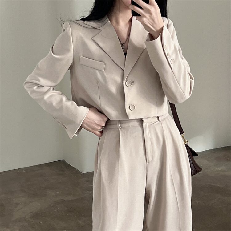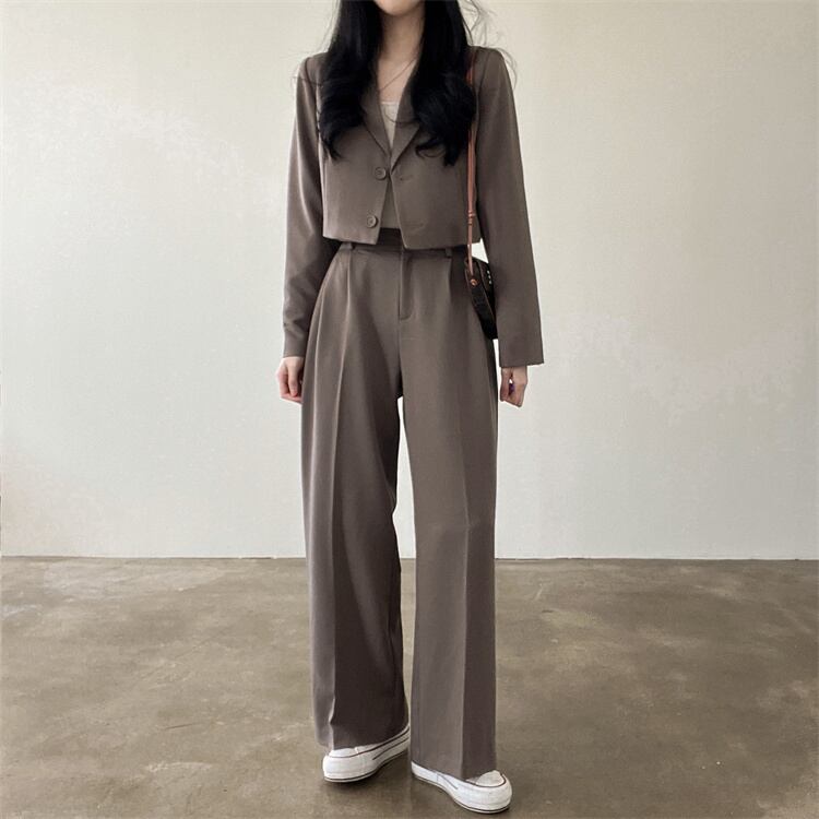 カジュアルコーデ向け 短ジャケットとロングパンツのセットで、日常のスタイルに新たな魅力をプラスしませんか?カジュアルでありながら、洗練されたデザインが特徴で、幅広いシーンにマッチします。
