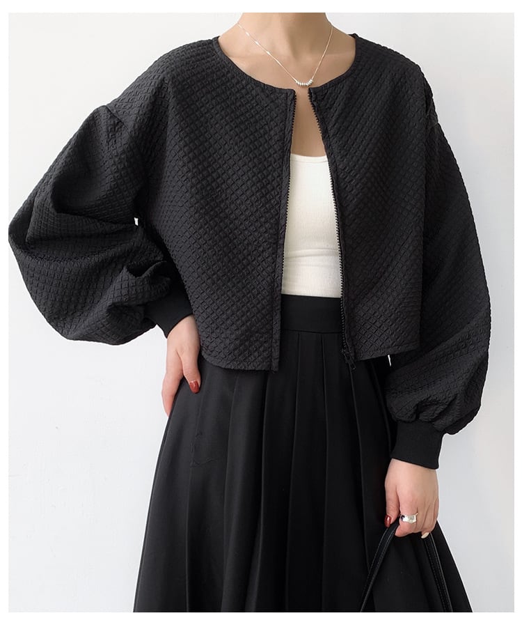 この秋、注目のショート丈ジャケットが登場!ハブスリーブデザインとラウンドネックが、さりげなく気質を演出するスタイリッシュな一着です。軽やかで快適な着心地を実現し、デイリーユースにもぴったりのアイテムです!