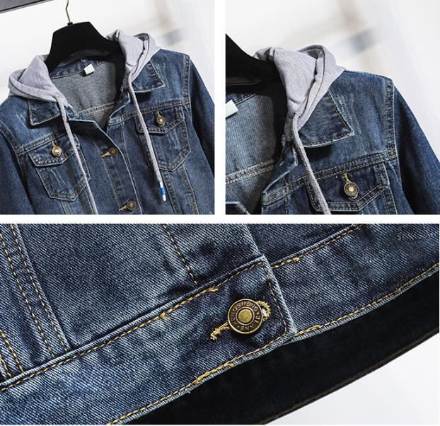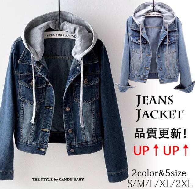 デニムショートジャケット春秋新作ロングスリーブ スリムフィット フード付き 学生向けカジュアルトップス