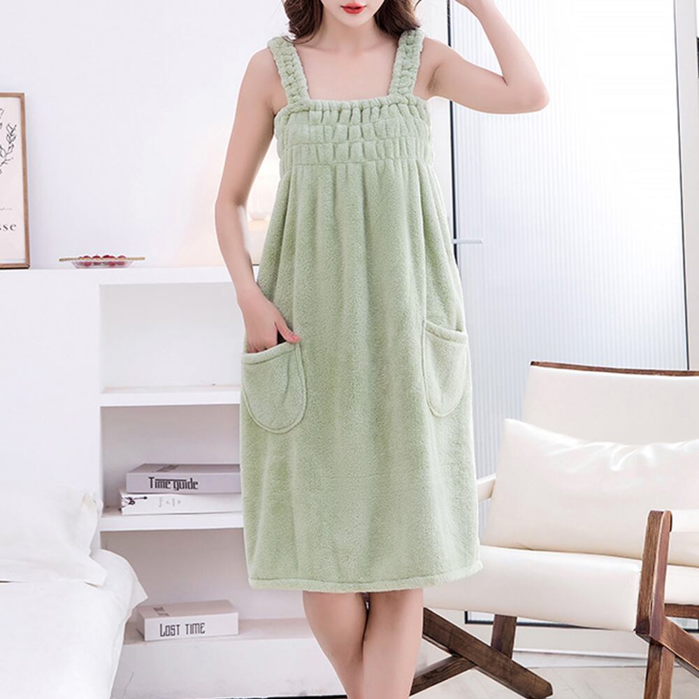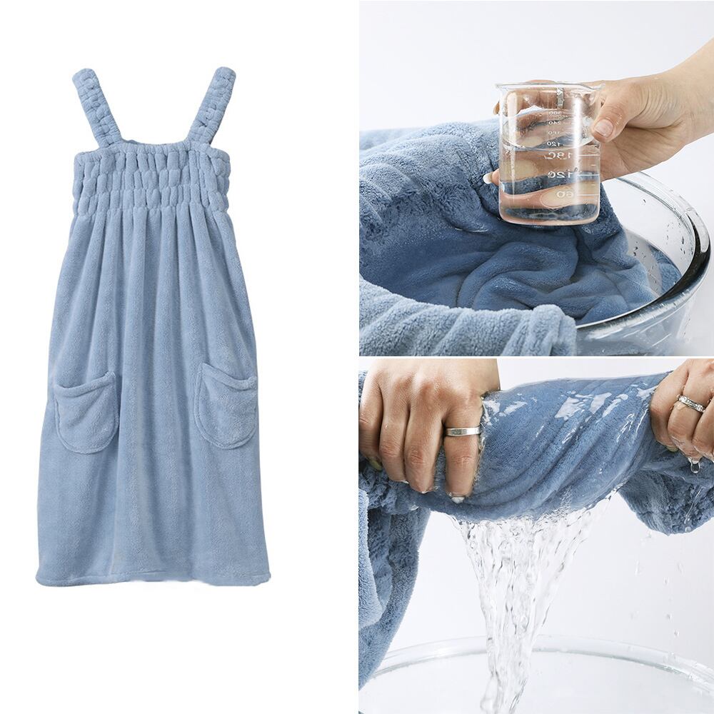 超極細繊維生地でさらっと着るだけで体について水分をしっかり吸収するワンピースタイプのバスタオル
