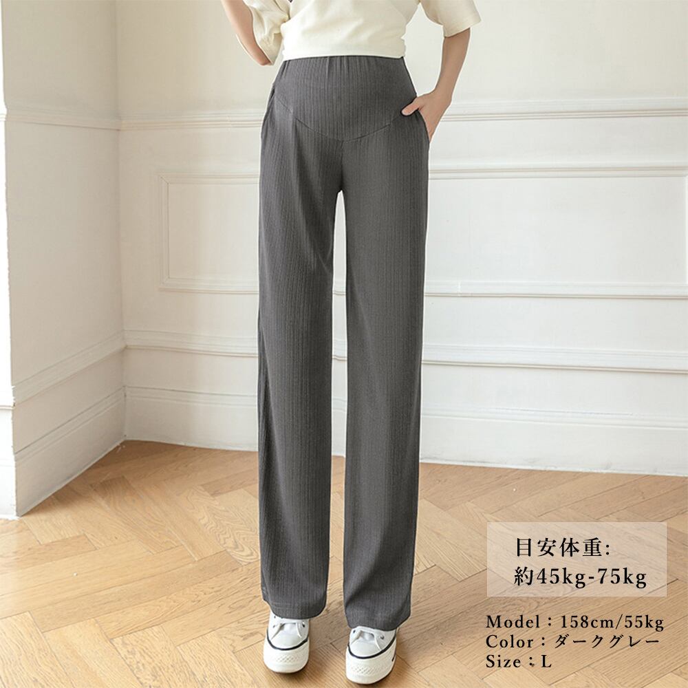 ストレートパンツ黒/楽ちんパンツ 出産/マタニティ服春夏秋