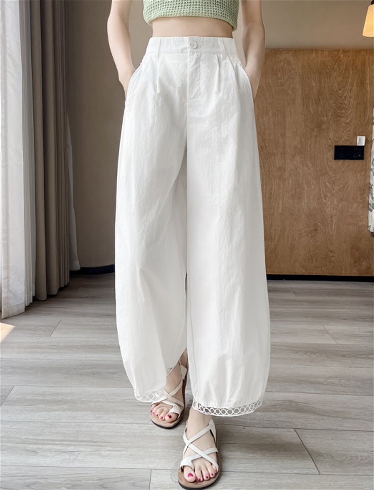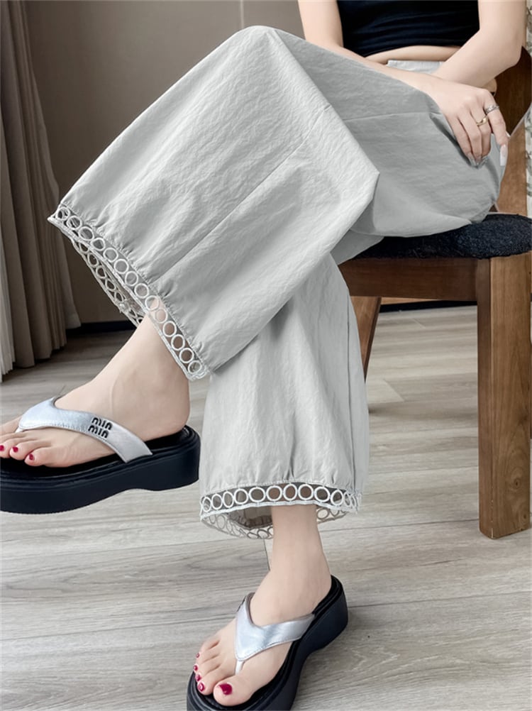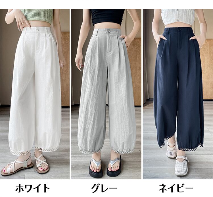 レース&クロシェット ワイドレッグ アンクルパンツ 2025新作 ルーズ 薄手 カジュアル