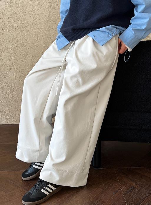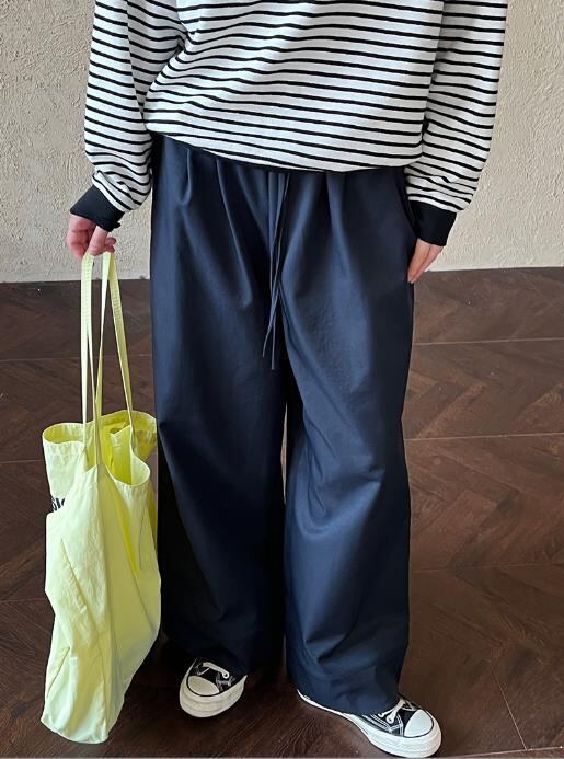 2. ワイドレッグデザインが脚をスッキリと見せ、自然なリラクゼーションとエレガントさを演出します。