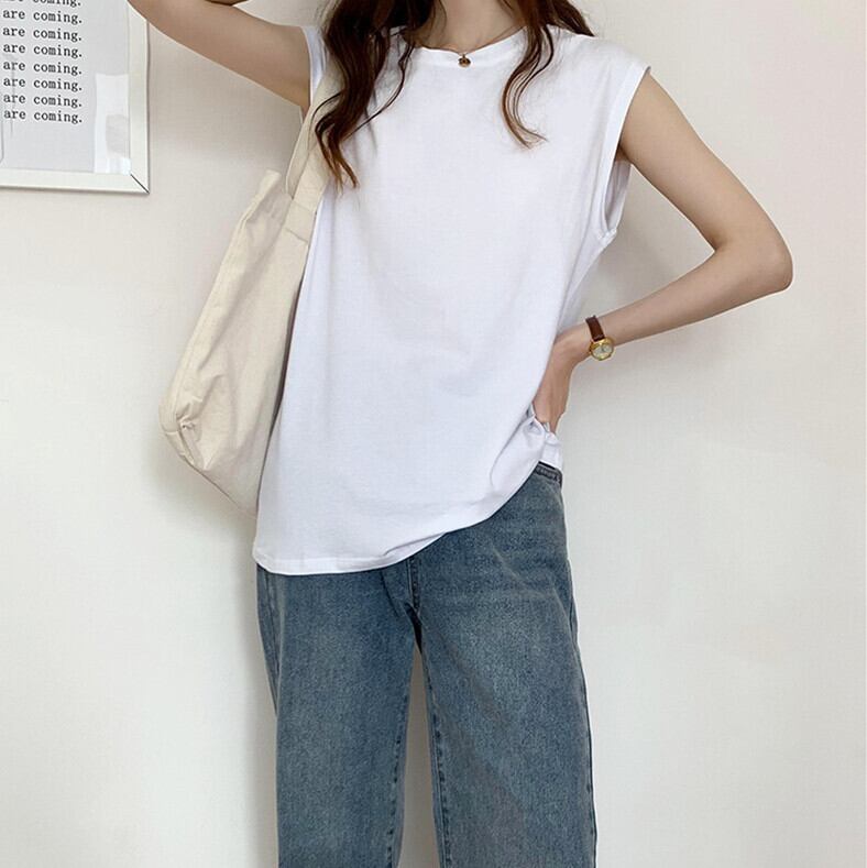 Tシャツ 2025年新作 ノースリーブ トップス レディース ラウンドネック 気質 オシャレ