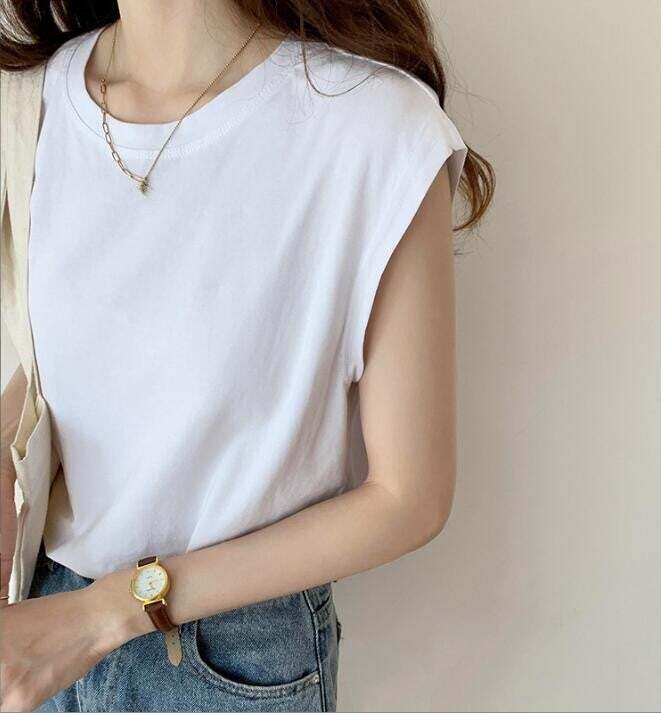 この「Tシャツ ノースリーブ」を取り入れることで、デニムやスカートとの組み合わせが楽しめます!カジュアルからきれいめスタイルまで、様々なコーディネートに活躍するアイテムなので、ぜひ一枚加えて新しいファッションを楽しんでください♪