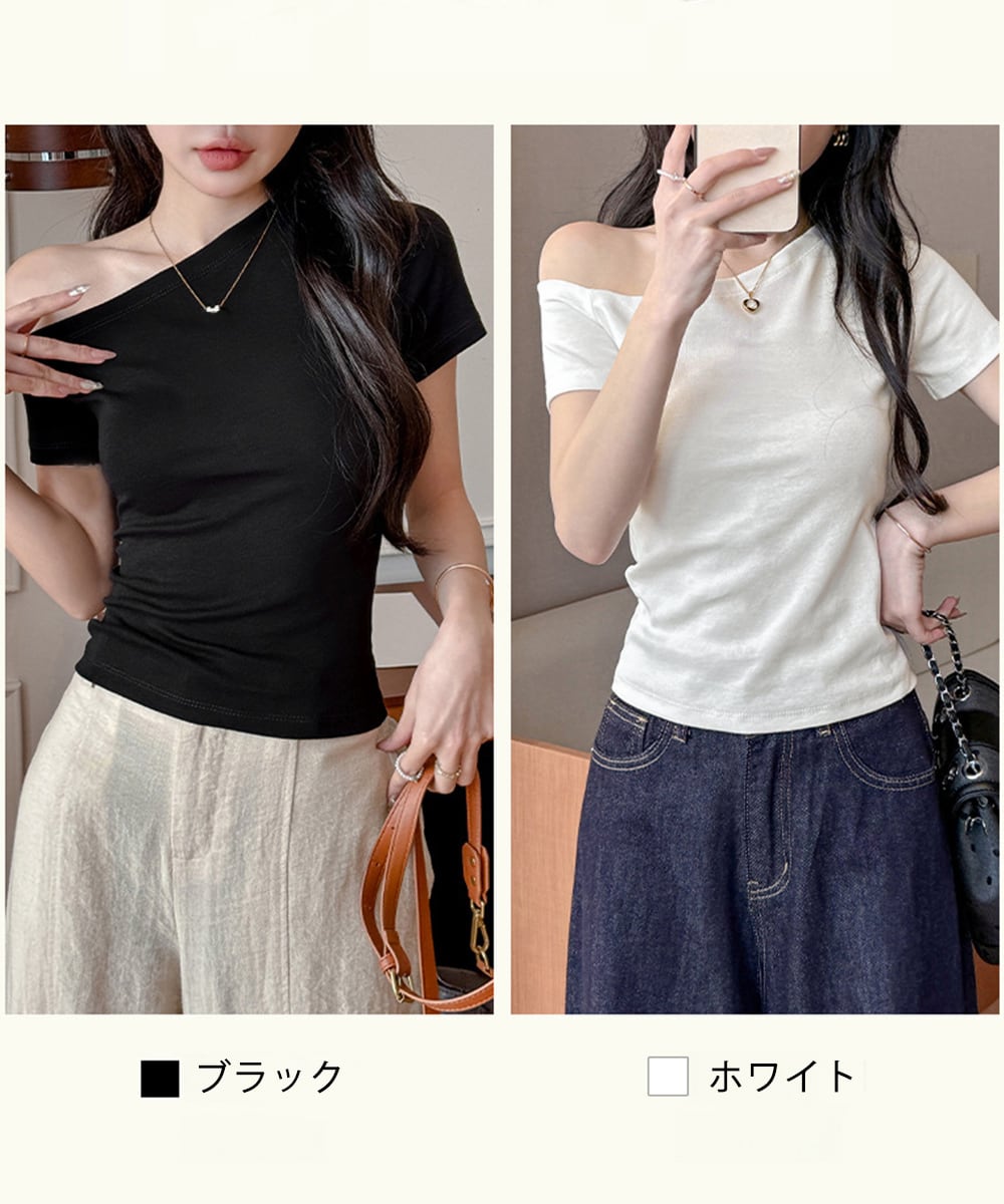 無駄のない洗練されたデザインが魅力の片肩オフショルダーTシャツが登場しました!