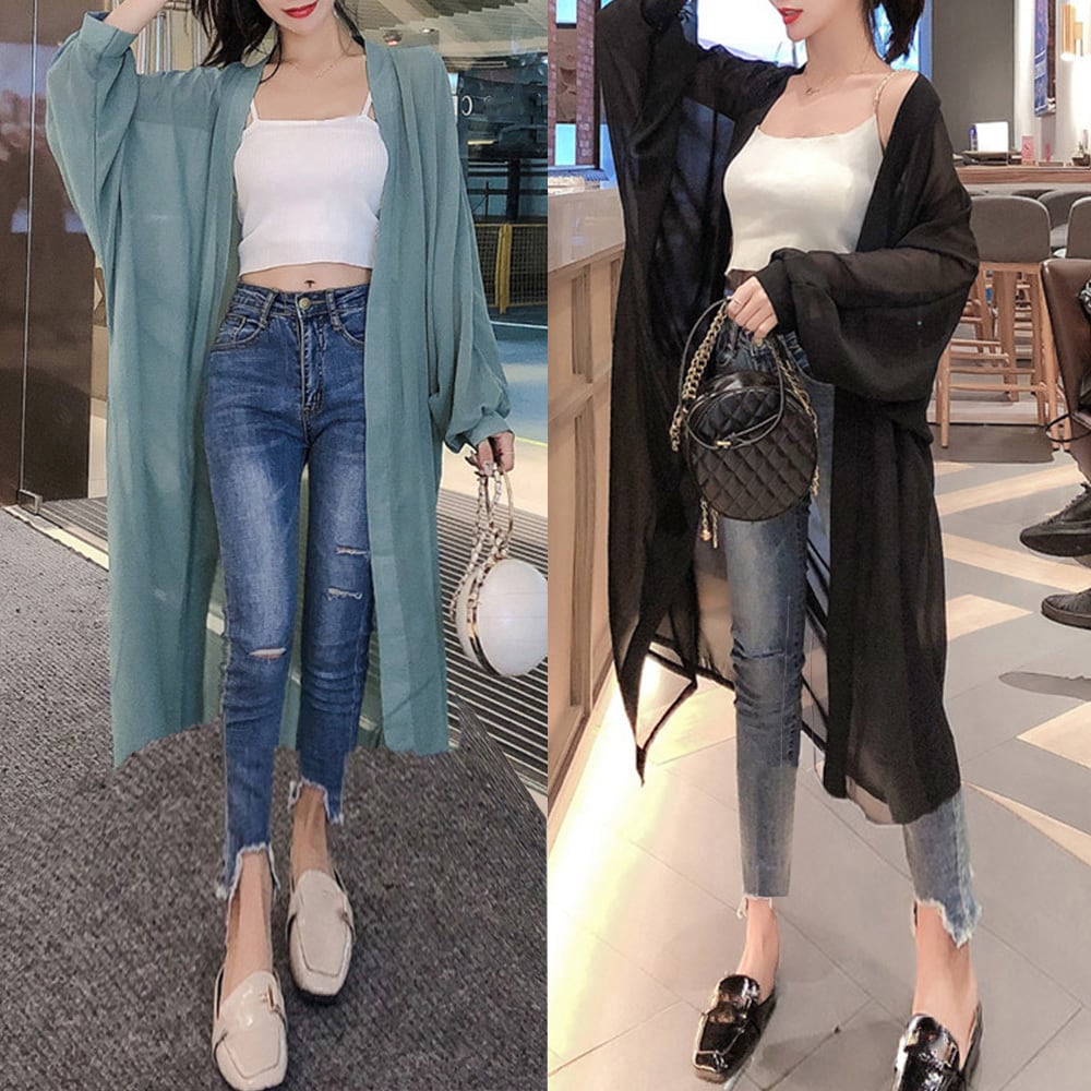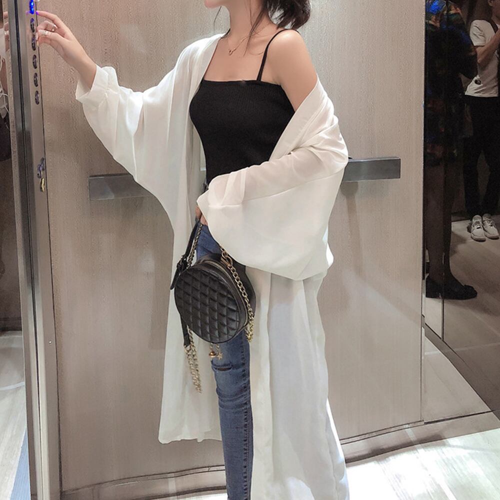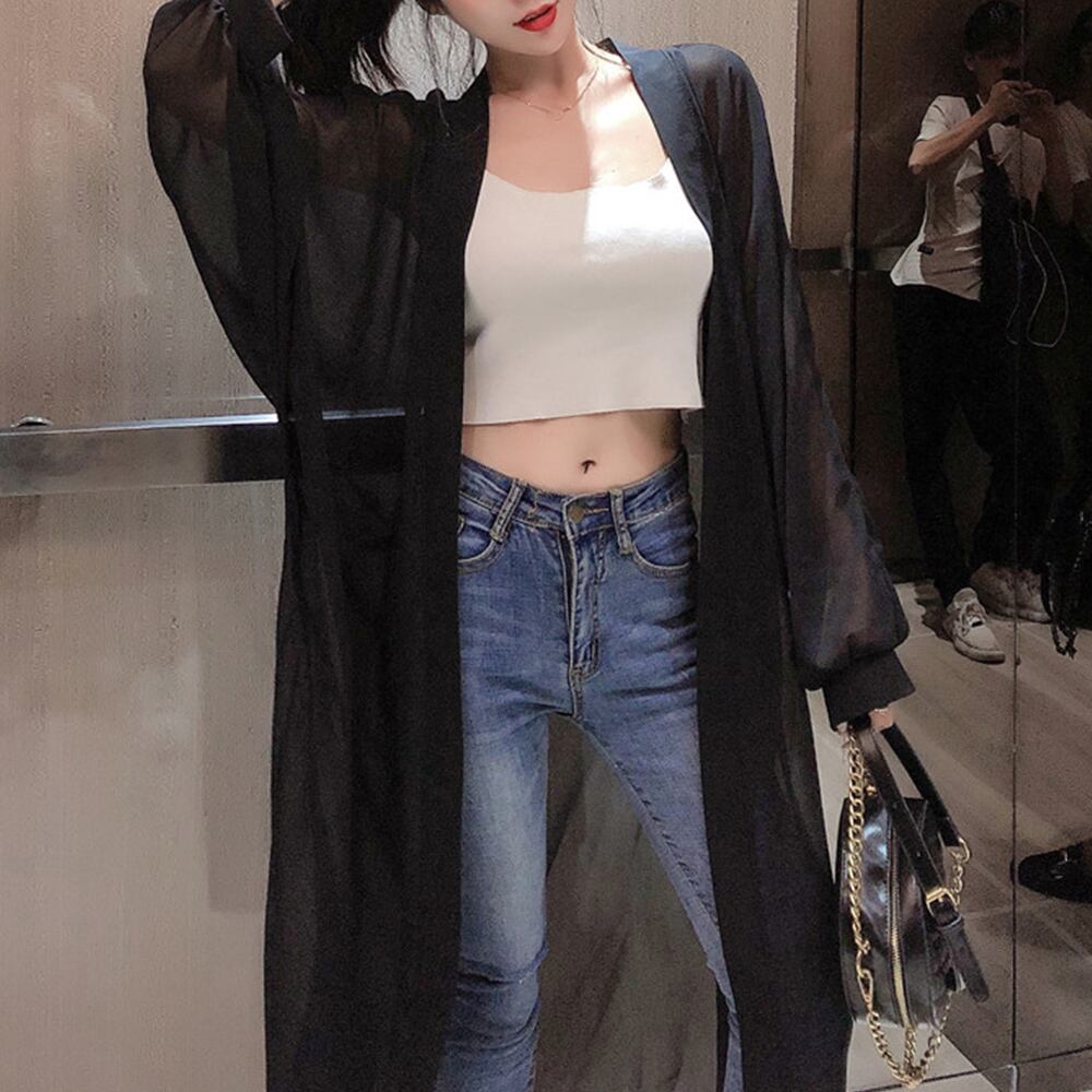 1. 通気性に優れた薄手のシアー素材を使用!軽やかな羽織り心地で、暑い季節でも快適に過ごせます。透け感がおしゃれなアクセントを加えてくれるので、コーディネートが一段と華やかになります!