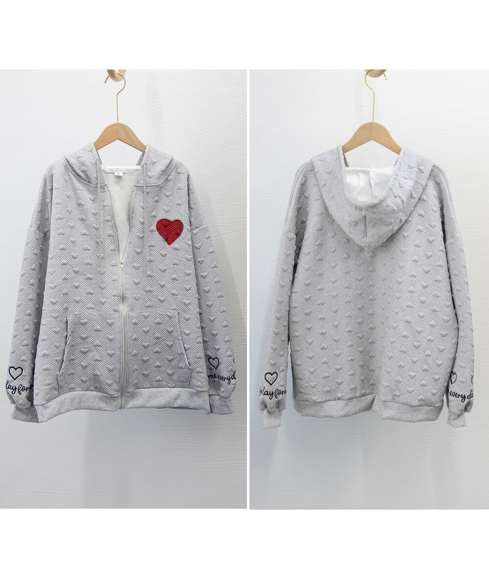 胸元に大きなハートロゴが目を引くジップアップパーカーが登場しました!