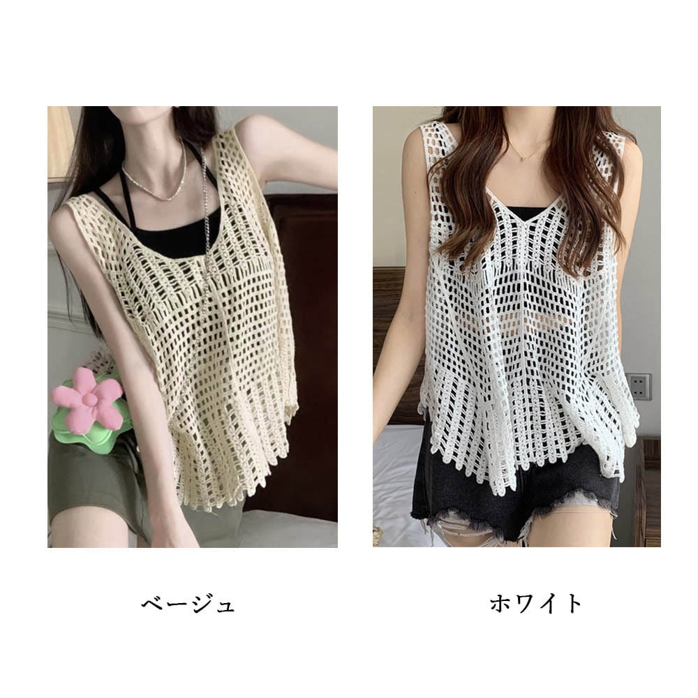 かぎ針編み風 ビスチェ ニットタンクトップトップス