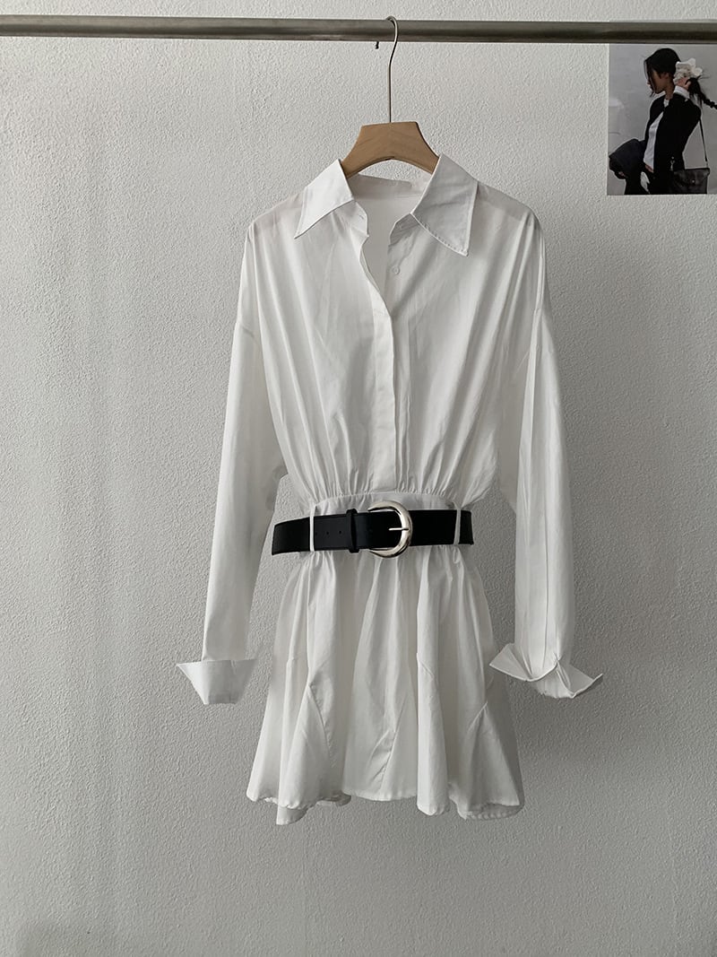 春秋新作 女 レディース ハイウエスト 長袖 無地 シャツ ミニ ワンピース ドレス 台型スカート