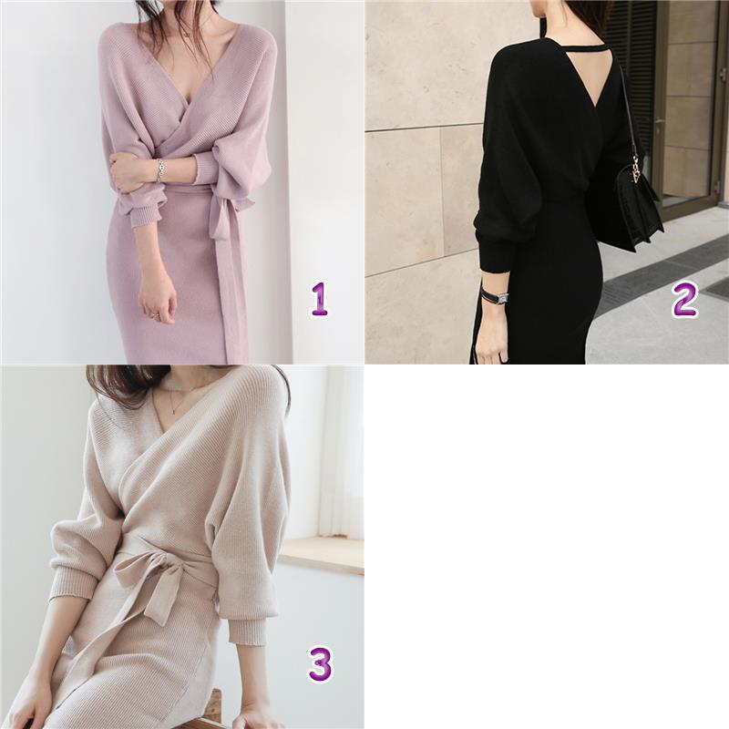 ファッション☆おしゃれ☆ニットワンピース☆セクシー スリット ひざ丈 3色