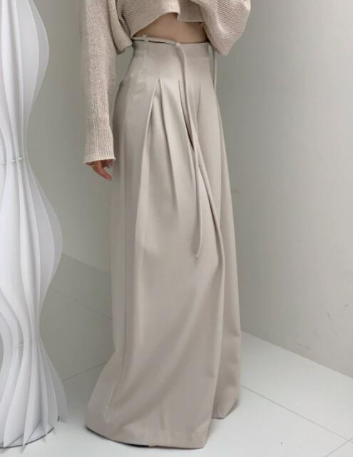 2. ワイドシルエットが存在感抜群で、シンプルなトップスとのコーディネートが容易です。フォーマルな場からカジュアルシーンまで、多彩に着回せる魅力があります♪