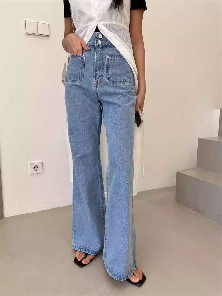 この「ハイウエスト2ボタン デニムパンツ」は、オフィスでのリラックスコーデや友人とのカジュアルな集まりに最適です!お好みのトップスや軽やかなアウターと組み合わせることで、トレンド感あふれるスタイリッシュなコーディネートが楽しめます。毎日のファッションに自信を与える、必須アイテムです!