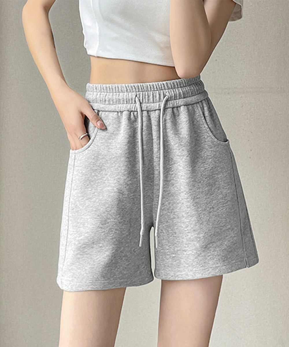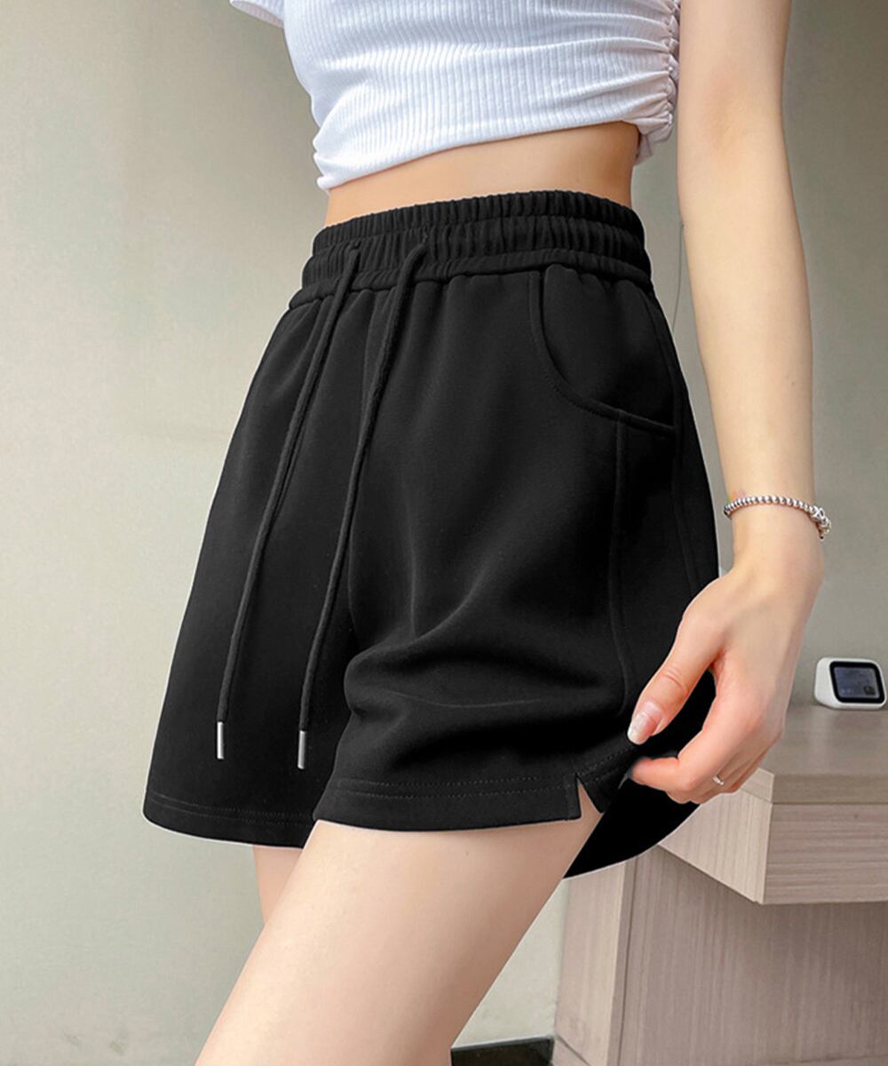 スウェット素材のドローストリングショートパンツが登場しました!やわらかなコットン混生地を使用し、軽やかかつ快適なはき心地を実現しました。サイドのステッチと裾のスリットがおしゃれ度をアップ。ハイウエストデザインによって美しいラインを演出し、カジュアルなデイリールックからリラックスタイムまで多彩なシーンで活躍するアイテムです♪