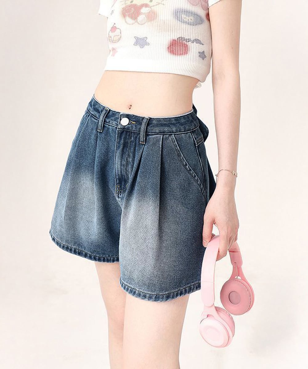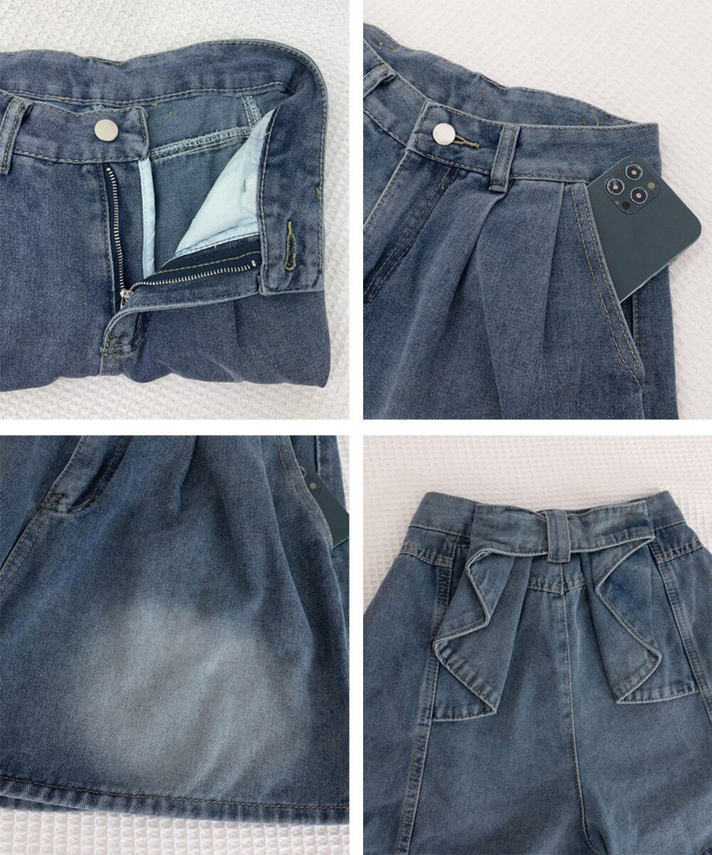 ウエストリボンデニムショートパンツ韓国風