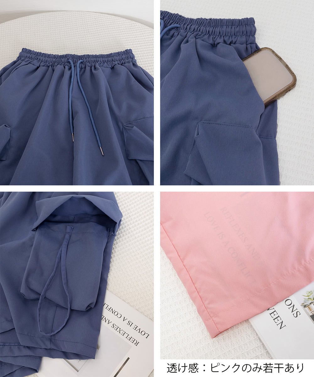 [M]着丈:約50cm 股下:約18cm ウエスト(ゴム仕様):約60-98cm ヒップ:約114cm もも周り:約68cm
