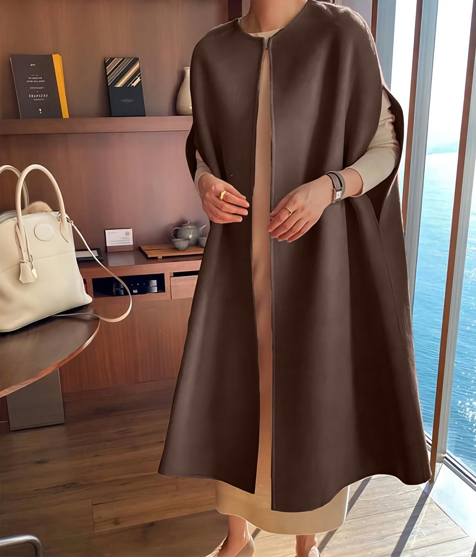 1. 上品なチェスターフィールドスタイルが、リッチな印象を与えつつ、体型カバーにも優れたロング丈を実現しました。気軽に羽織るだけで、洗練されたスタイルに仕上げてくれること間違いありません♪
