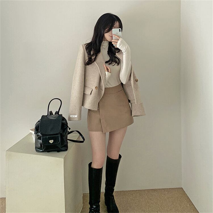2025冬季 ダブルボタン ウールジャケット オフィス着用 ロングスリーブ 上品感