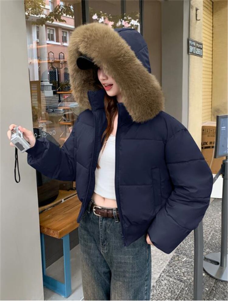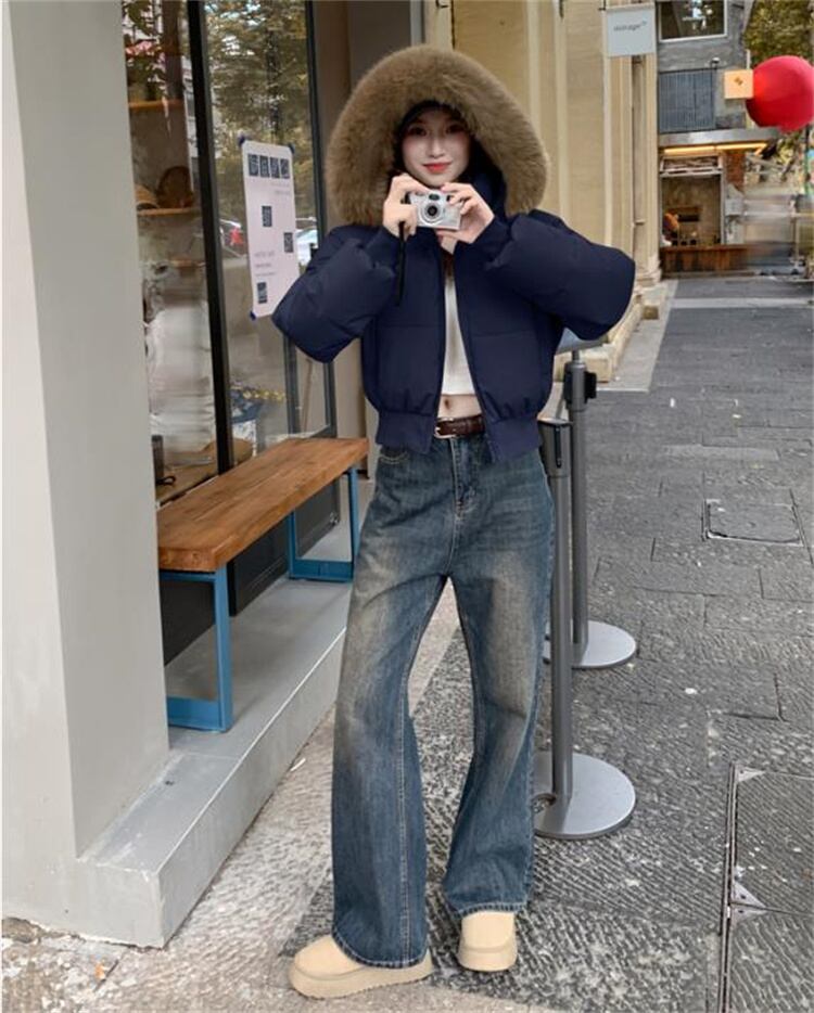 辣妹風 冬用 大毛襟 ダウン感 短款 厚手 パフコート 2025