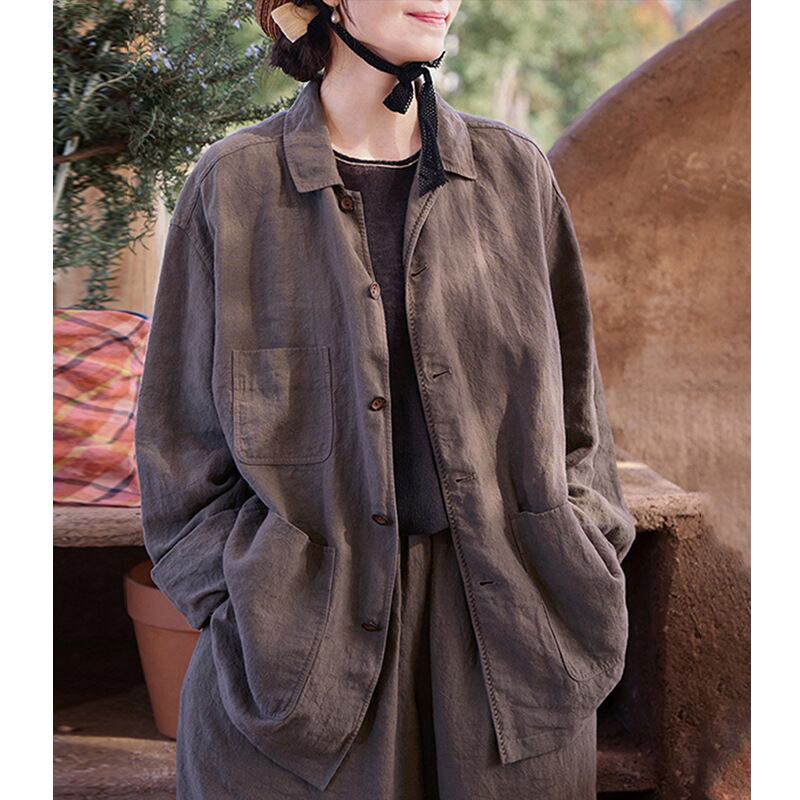 カジュアルレトロリネンシャツジャケットトップス レディース