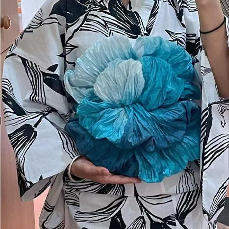1. リボン型に結ぶことでお花のようなデザインが可愛らしさを演出!しわ加工された生地は、ふんわりしたシルエットが特徴で、華やかな印象を与えます。結び方も簡単なので、和装初心者の方にもぴったりです♪
