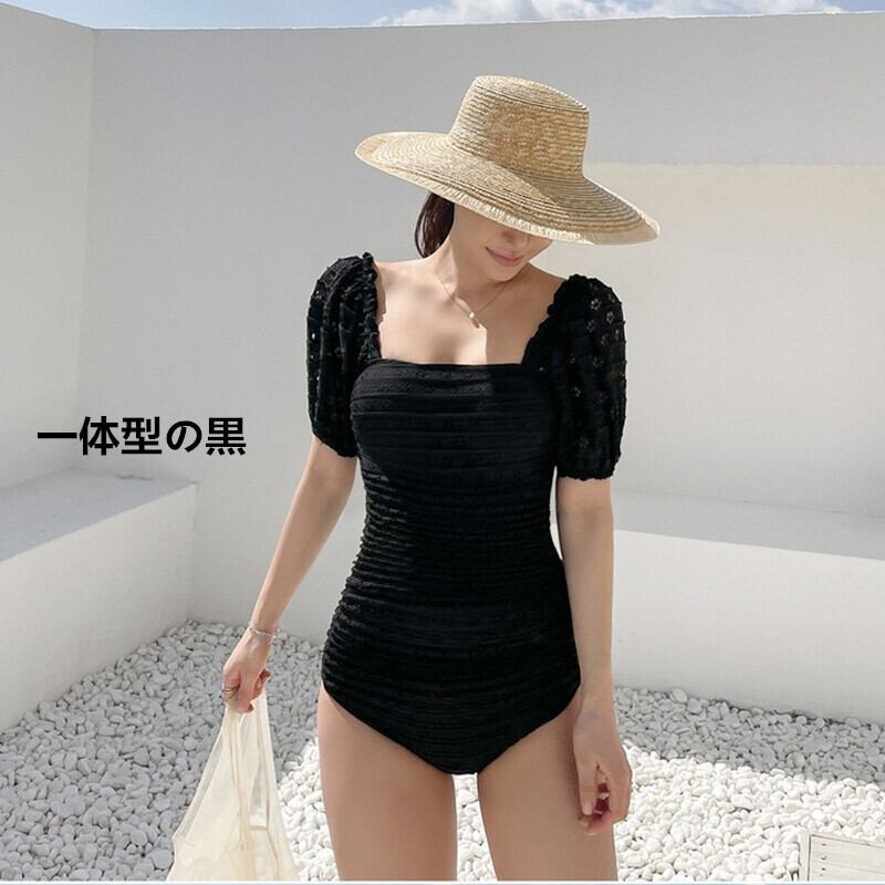2. ブラックカラーは、どんなビーチスタイルにも合わせやすく、トレンドを意識したシルエットが魅力です!心地よい素材で、温泉やプールでも安心して着られます。特別な日のコーディネートにも最適です♪