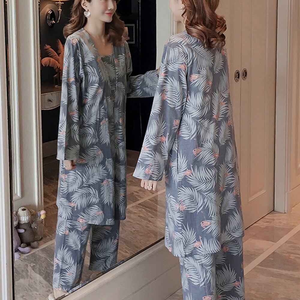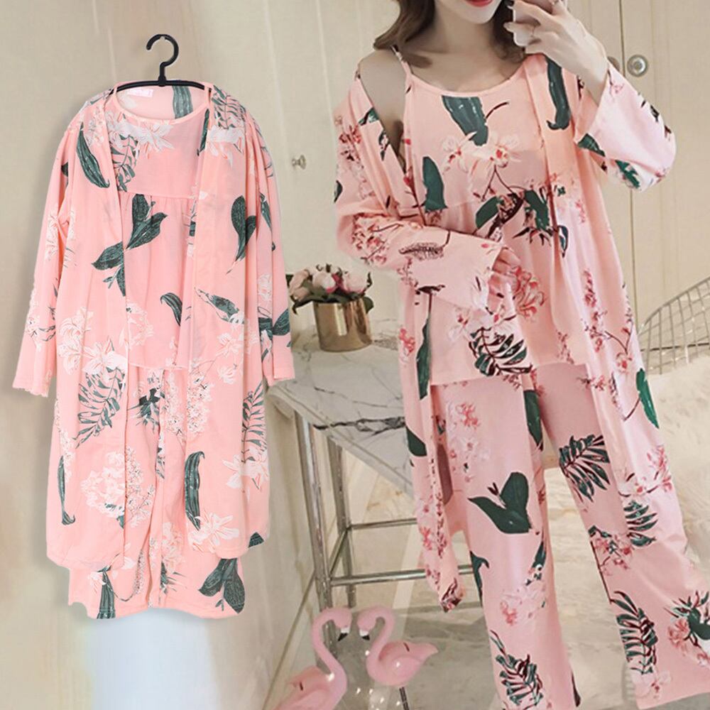 可愛くてちょっとセクシーなルームウェア3点セットが登場しました!ゆったりとしたシルエットなので休みの日に家で優雅に過ごすのにぴったりなアイテム。暑い季節はキャミソール姿で肌寒い季節長袖のカーディガンを羽織って春・秋・夏の季節に快適に過ごせる薄手のナイトウェアです。