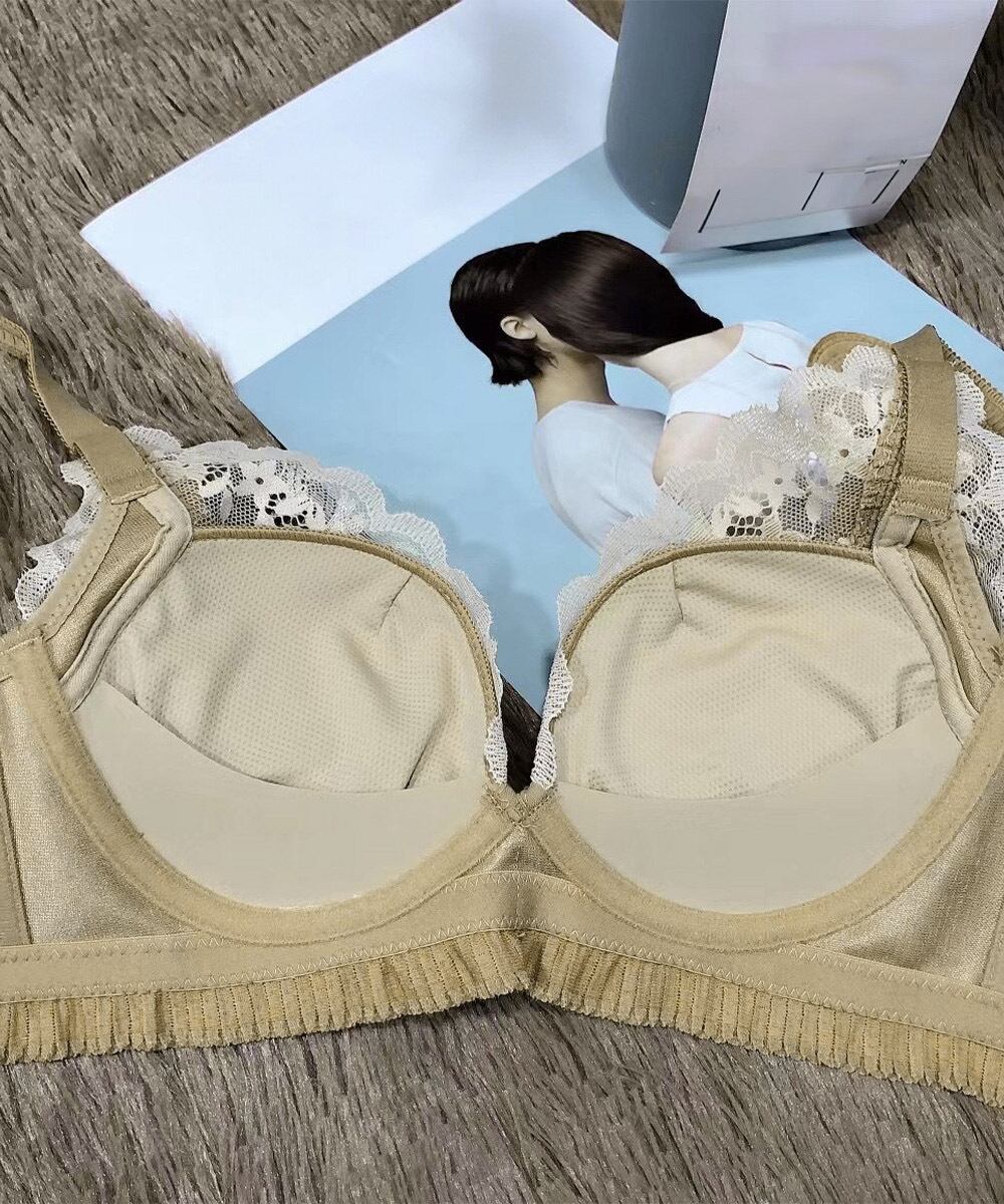 1. ワイヤレスのため、ストレスフリーな着心地を実現!薄手のレースが肌に優しく、ナチュラルな感触で心地よいです。セクシーさもあり、勝負下着としての存在感が際立ちます。