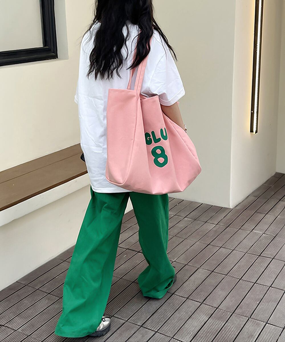 カジュアルなロゴデザインが目を引く、キャンバス地のトートバッグが新登場!韓国トレンドを取り入れたおしゃれで実用性抜群の一品です。軽量ながらしっかりとした生地感で、デイリーユースにぴったり。通学や通勤、レジャーから旅行まで幅広く活躍するスタイリッシュなトートバッグをぜひご覧ください♪