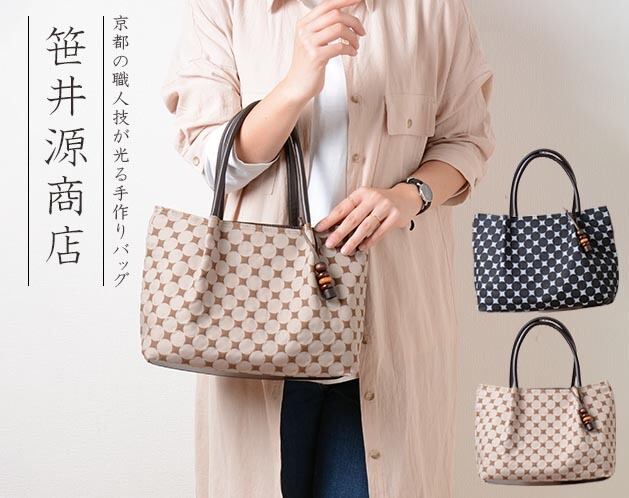 笹井源商店シュリンク水玉タック手提げ★京都の職人技が光る手作りバッグ!