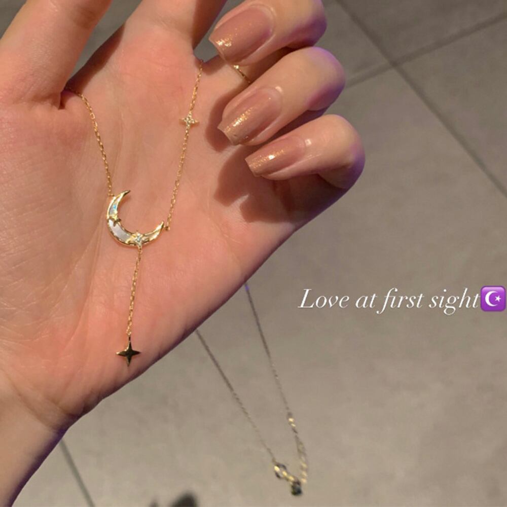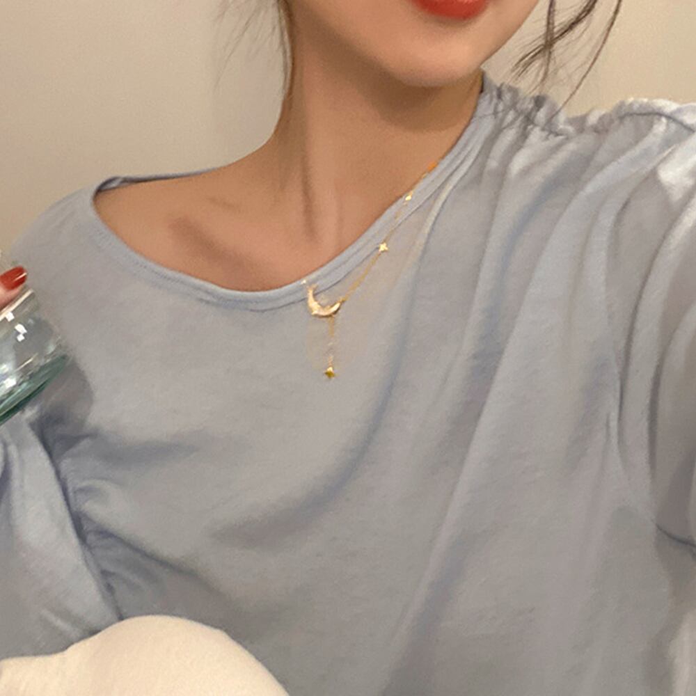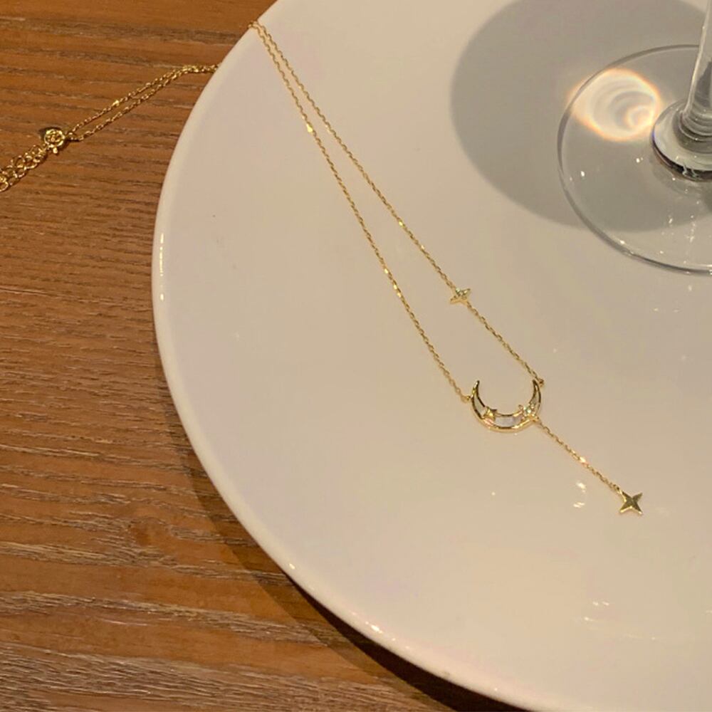 2. 華奢なチェーンが目を引き、星と月のモチーフが胸元に愛らしさを添えてくれます♪