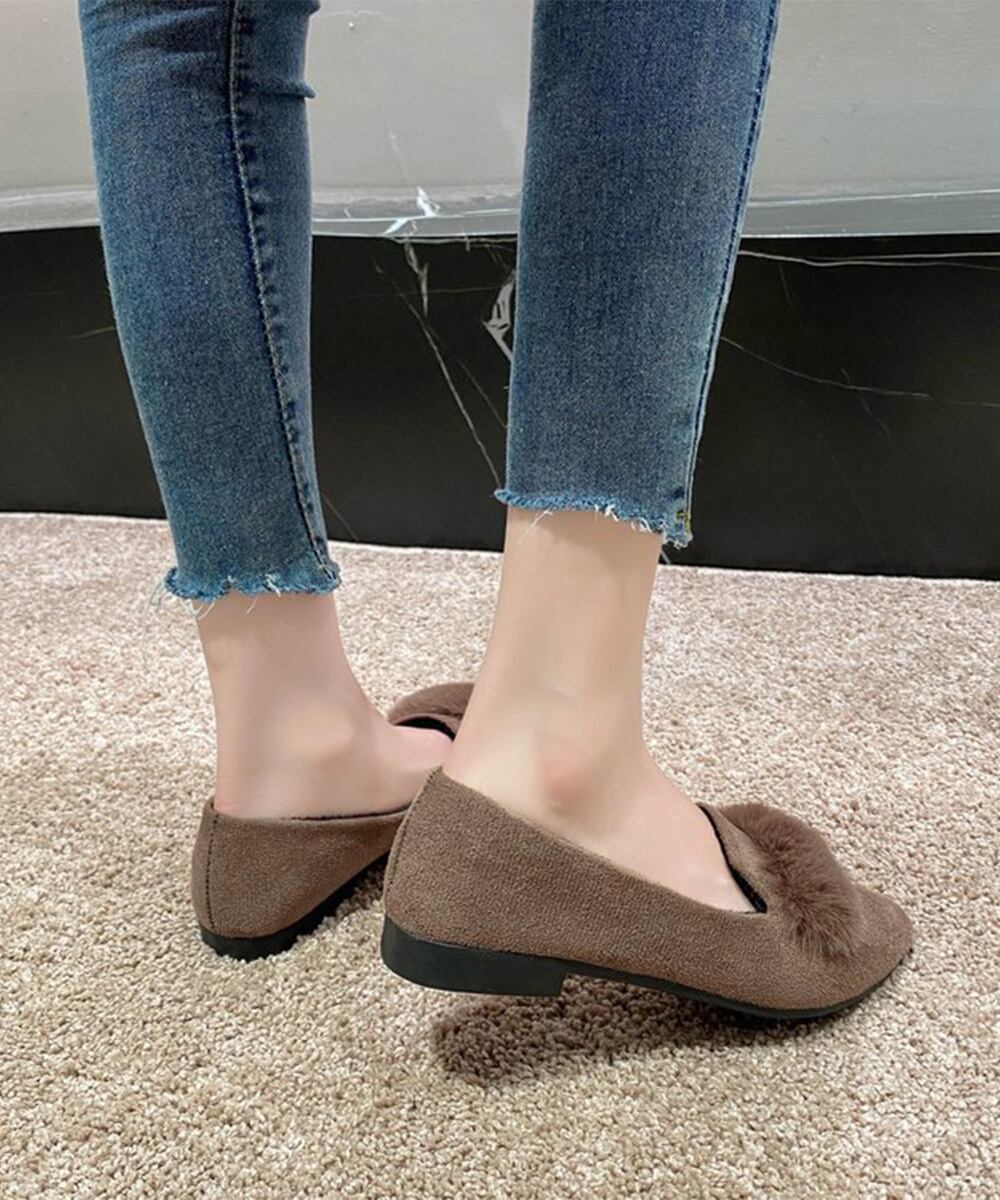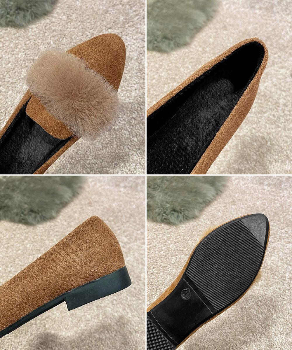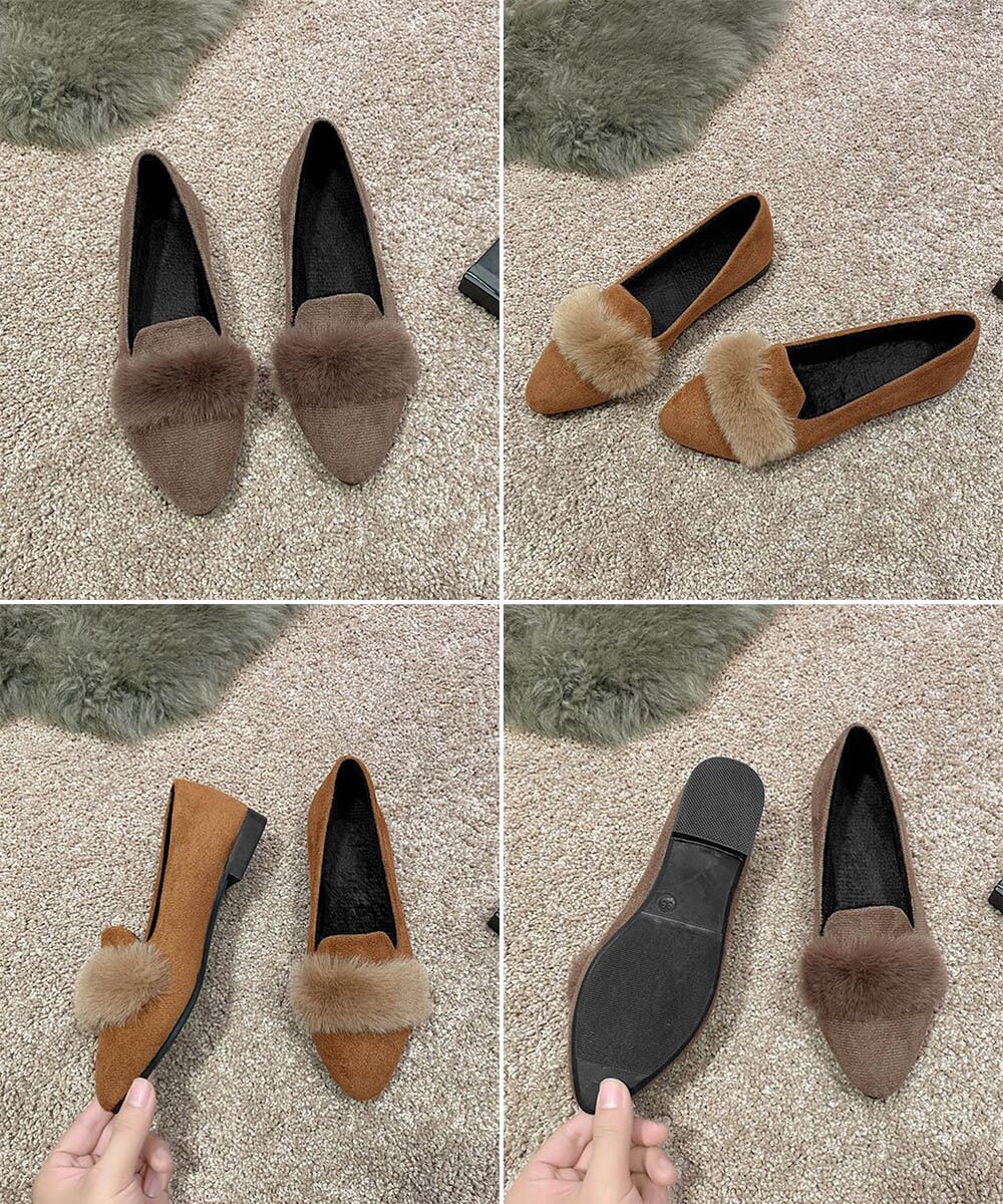 ファー付きパンプスポインテッドトゥ韓国風